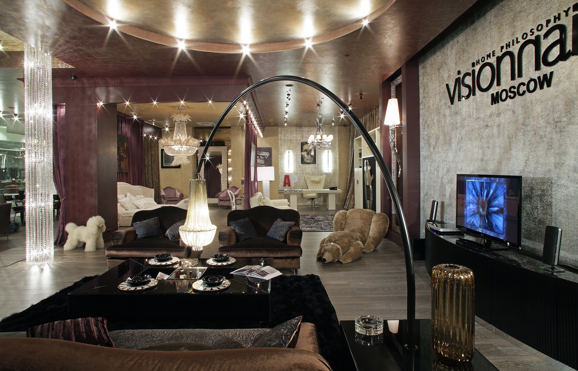 Торговый зал магазина – единое пространство, условно зонированное бархатными драпировками и финишныи отделками стен.