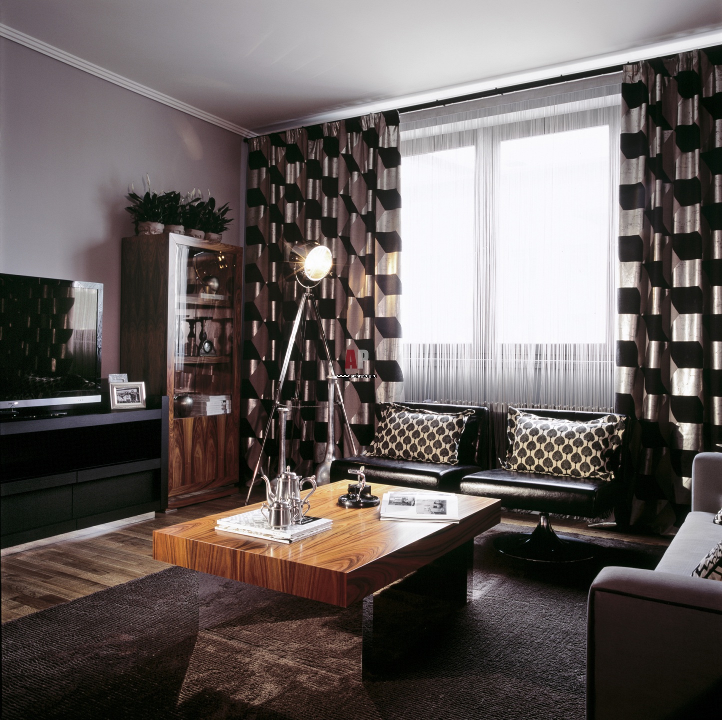 Зона домашнего кинотеатра в гостиной. Потолки помещений по периметру декорированы тонким лепным кантом, поставщик «Ампир Декор».