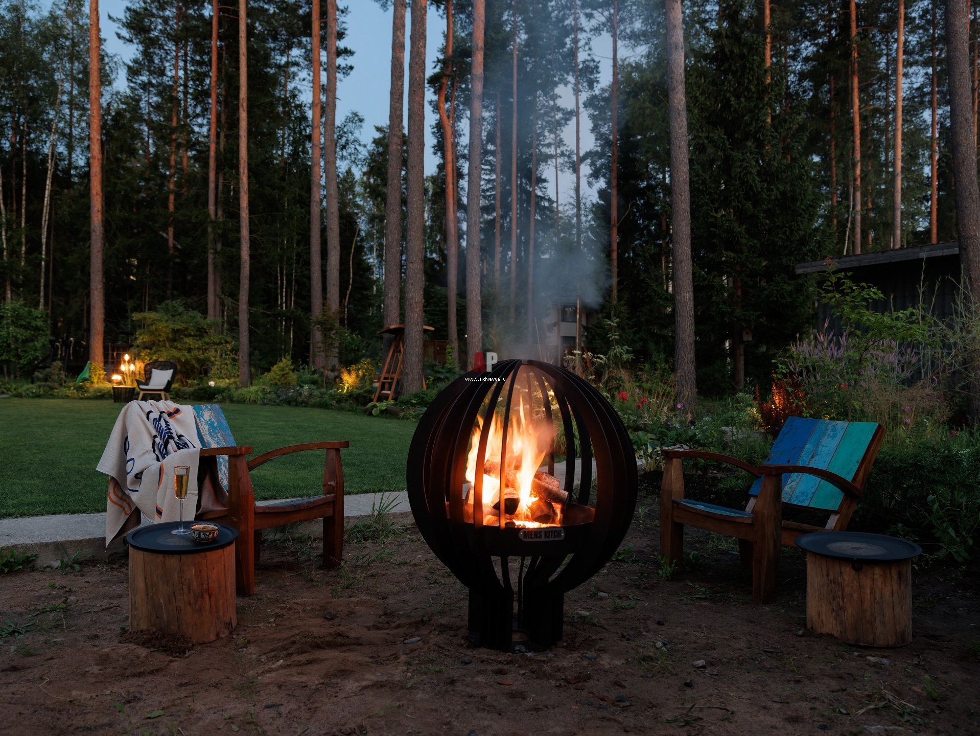 Ландшафт. Мангальная и костровая зоны расположены в глубине участка, чтобы предотвратить попадание запаха дыма в дом с учетом розы ветров и ближайшего расположения соседских домов.