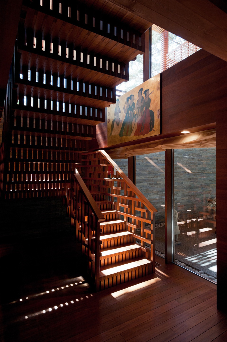 Фото интерьера лестницы дома в эко стиле