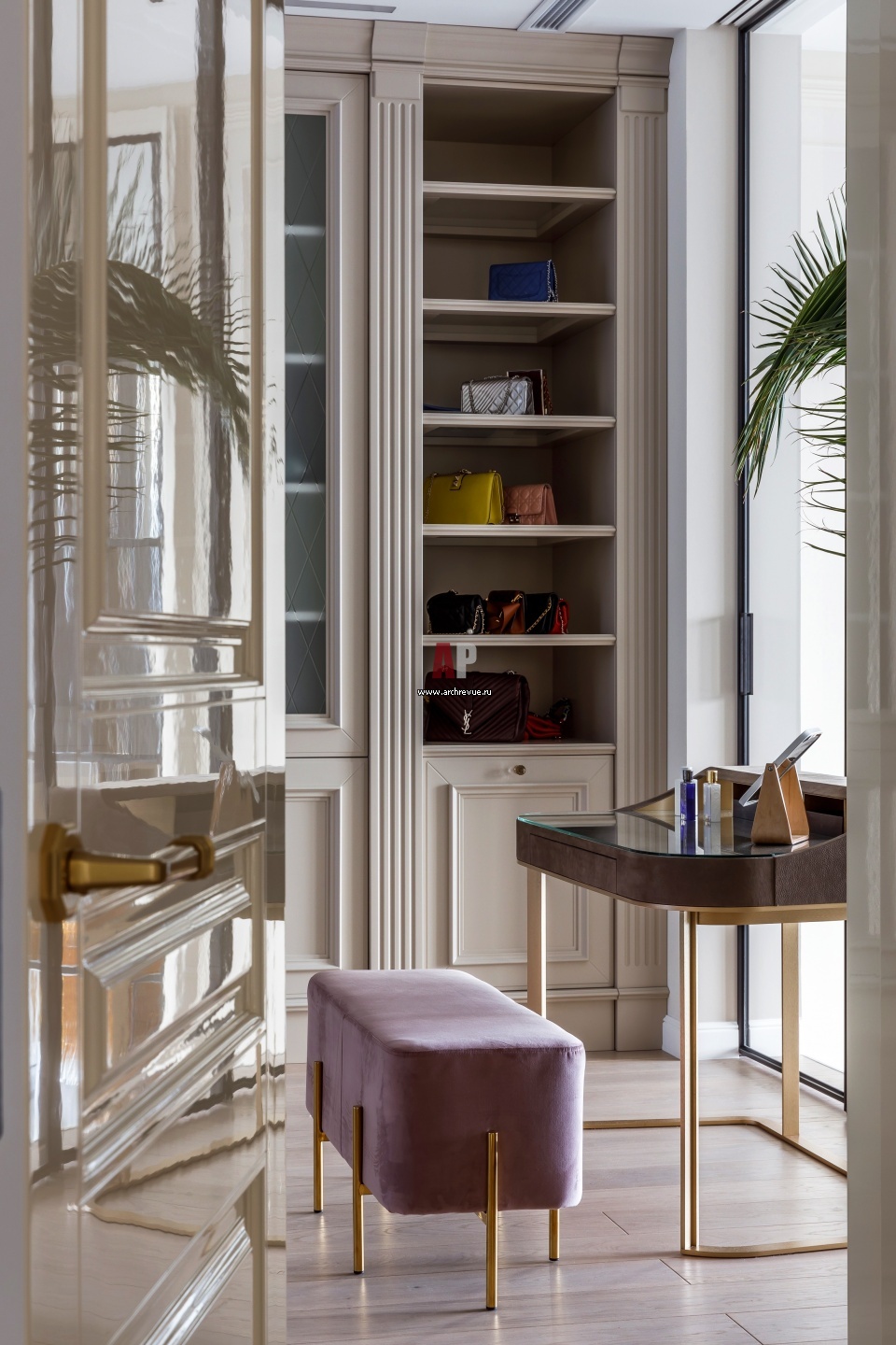 Фрагмент гардеробной. Шкафы и пуфик изготовлены на заказ.