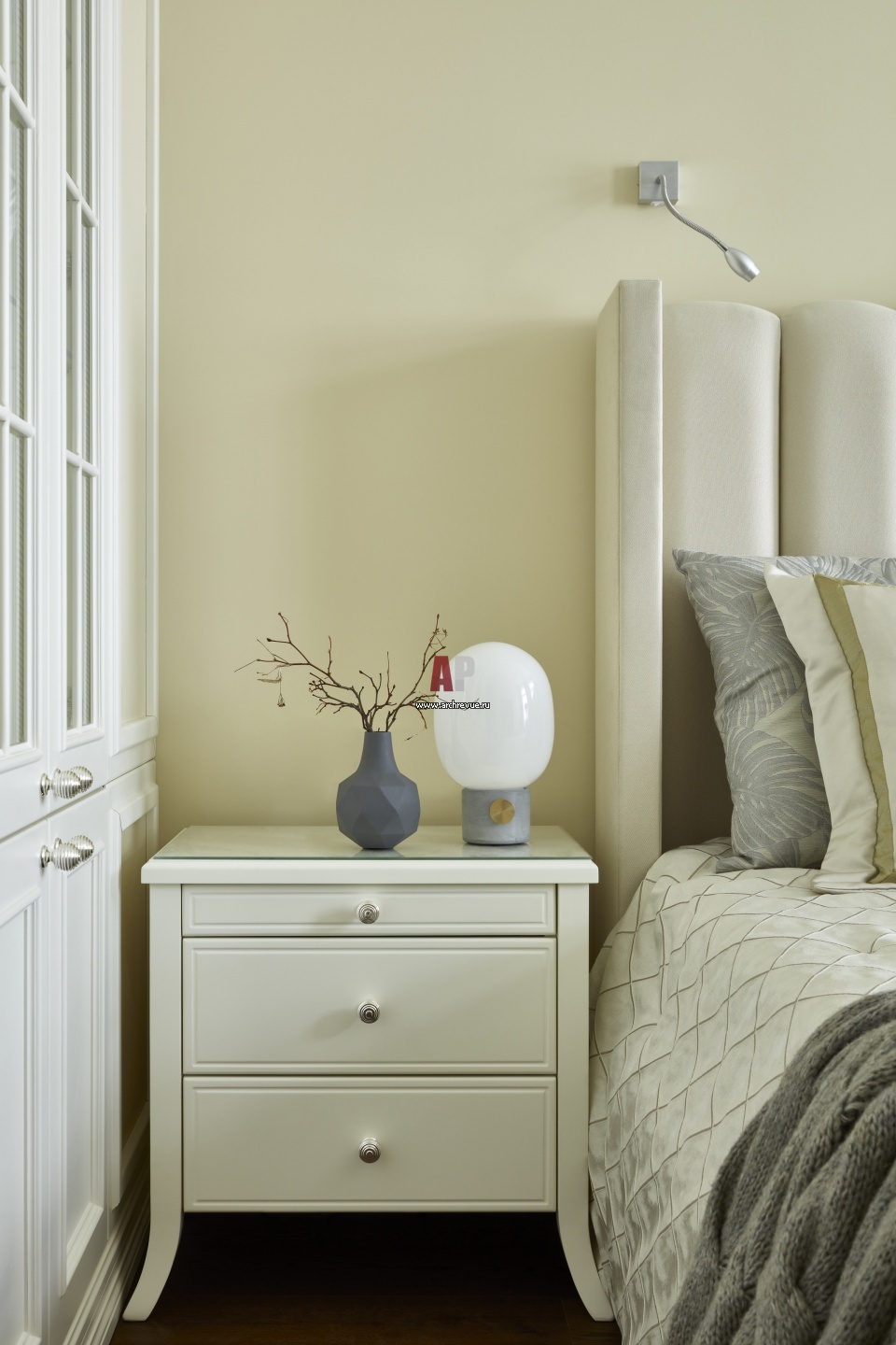 Семейная квартира с четырьмя спальнями. Интерьер хозяйской спальни. Слева – встроенная витрина для хранения любимой хозяйкой коллекции фарфоровых статуэток фабрики Lladró.