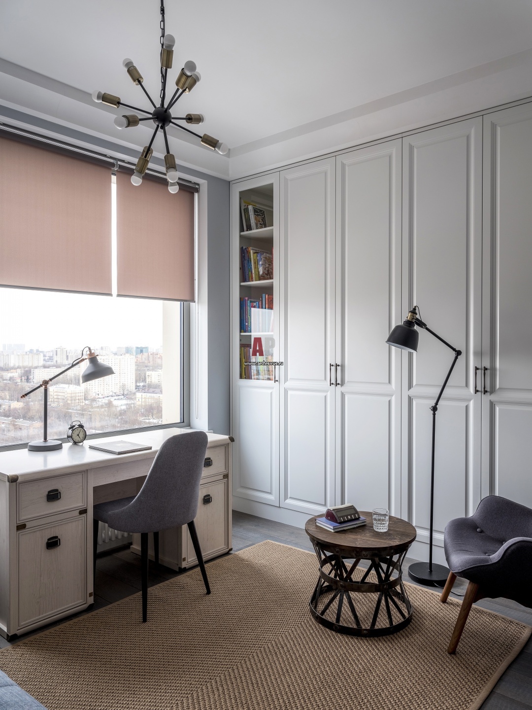 Комната старшего сына. Вся корпусная мебель сделана на заказ. Шкаф, МДФ, эмаль. Люстра, Loft Designe. Пол, инженерная доска.