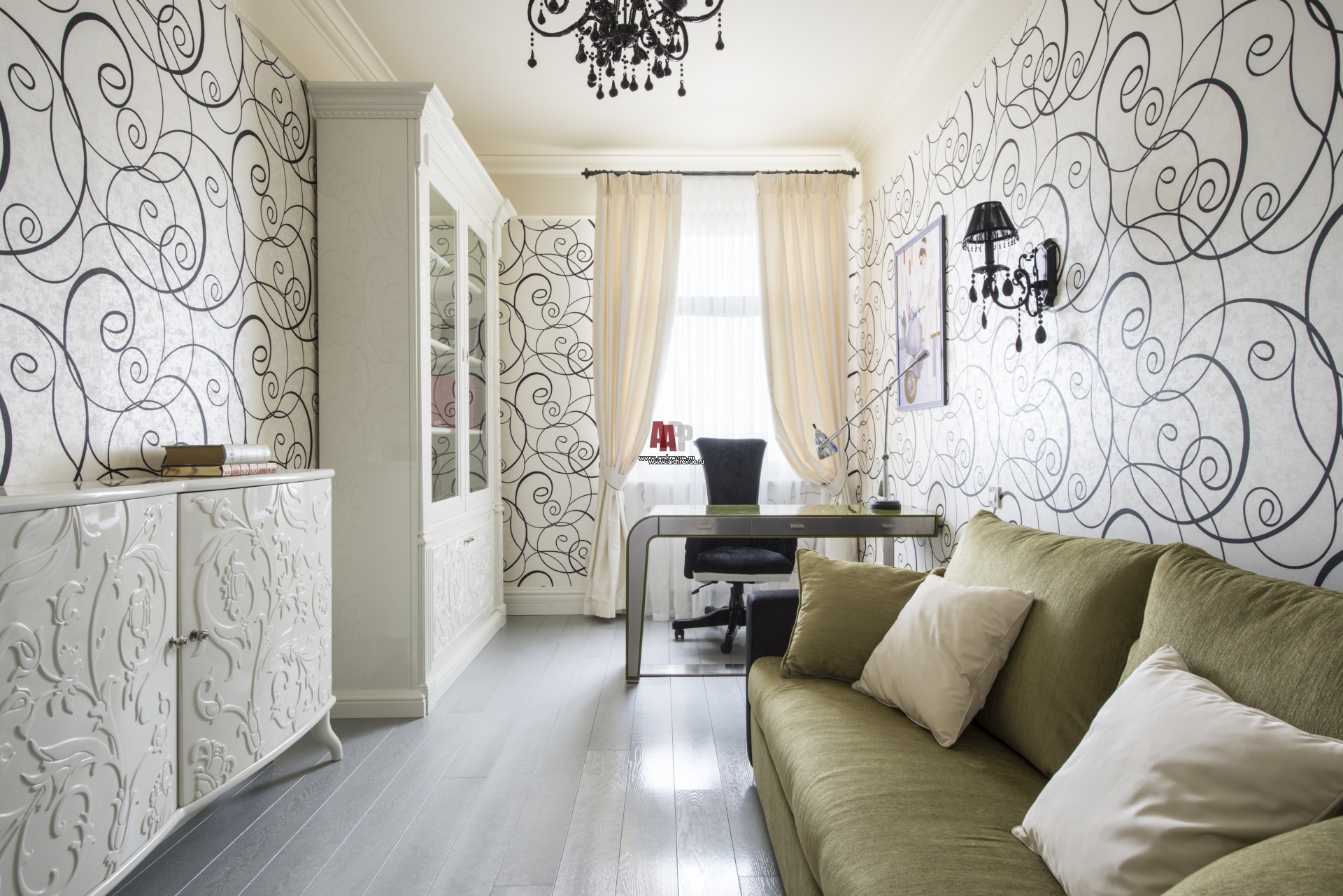 Фото дизайна женского кабинета в интерьере квартиры. Глянцевый белый комод с рельефом, Luciano Zonta.