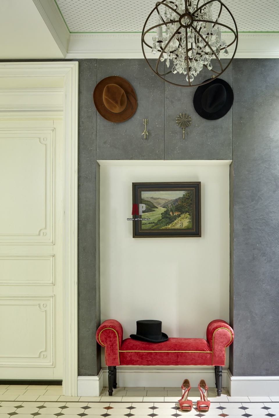 Двухэтажная квартира на Саввинской набережной. Интерьер прихожей. Красная банкетка, Kare Design.