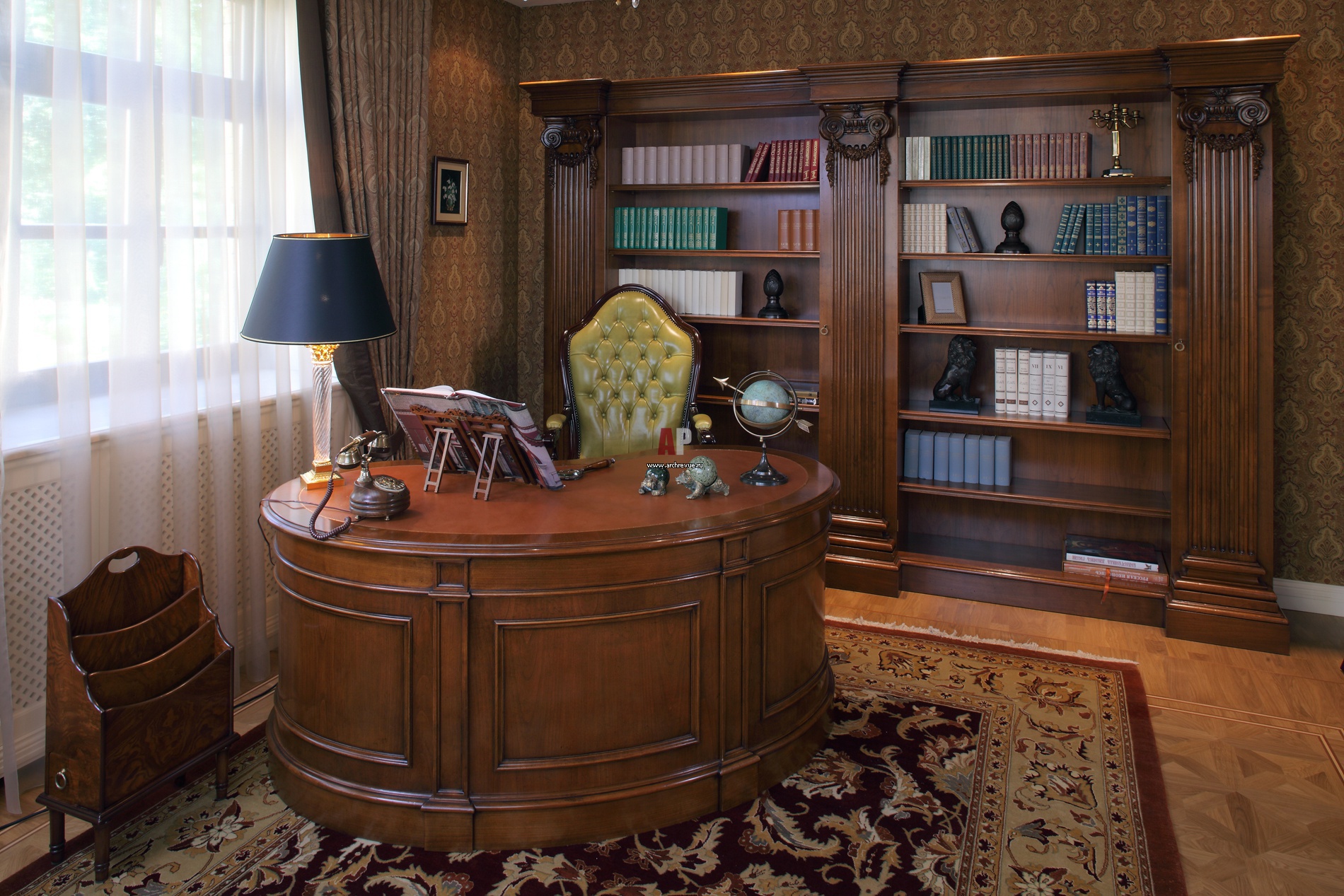 Фото интерьера кабинета трехэтажной квартиры в классике