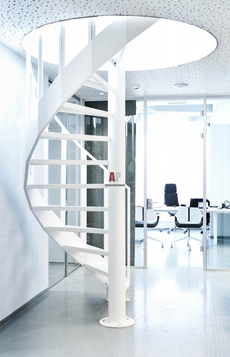 Винтовая лестница из крашенного в белый цвет металла ведет в мансарду с зоной отдыха, мини-кухней и выходом на открытую террасу.