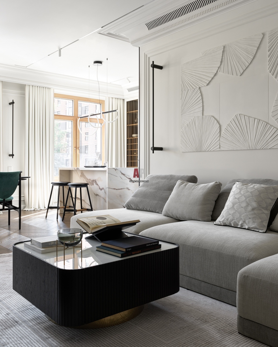 Фото интерьера гостиной квартиры в стиле неоклассика
