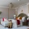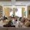 Столовая группа в общей гостиной. Обеденная группа, Century Furniture. Люстры, Corbett Lighting.
