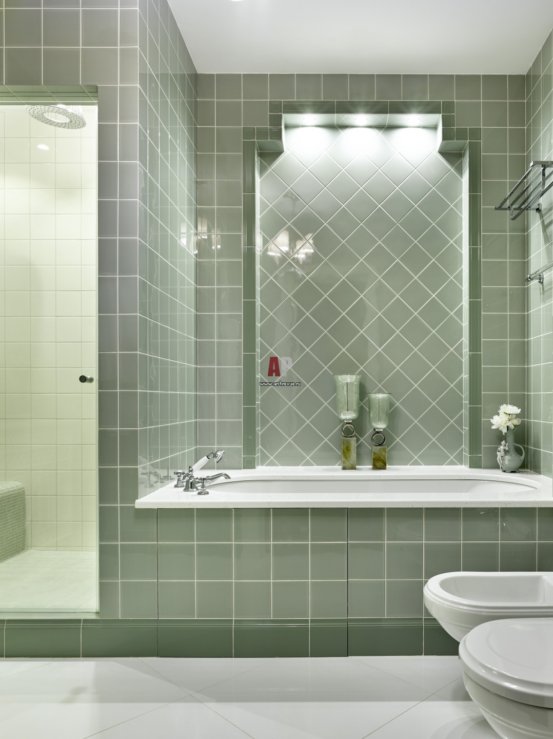 Зона ванны и душевой в санузле дочери. Сантехника, Villeroy & Boch.