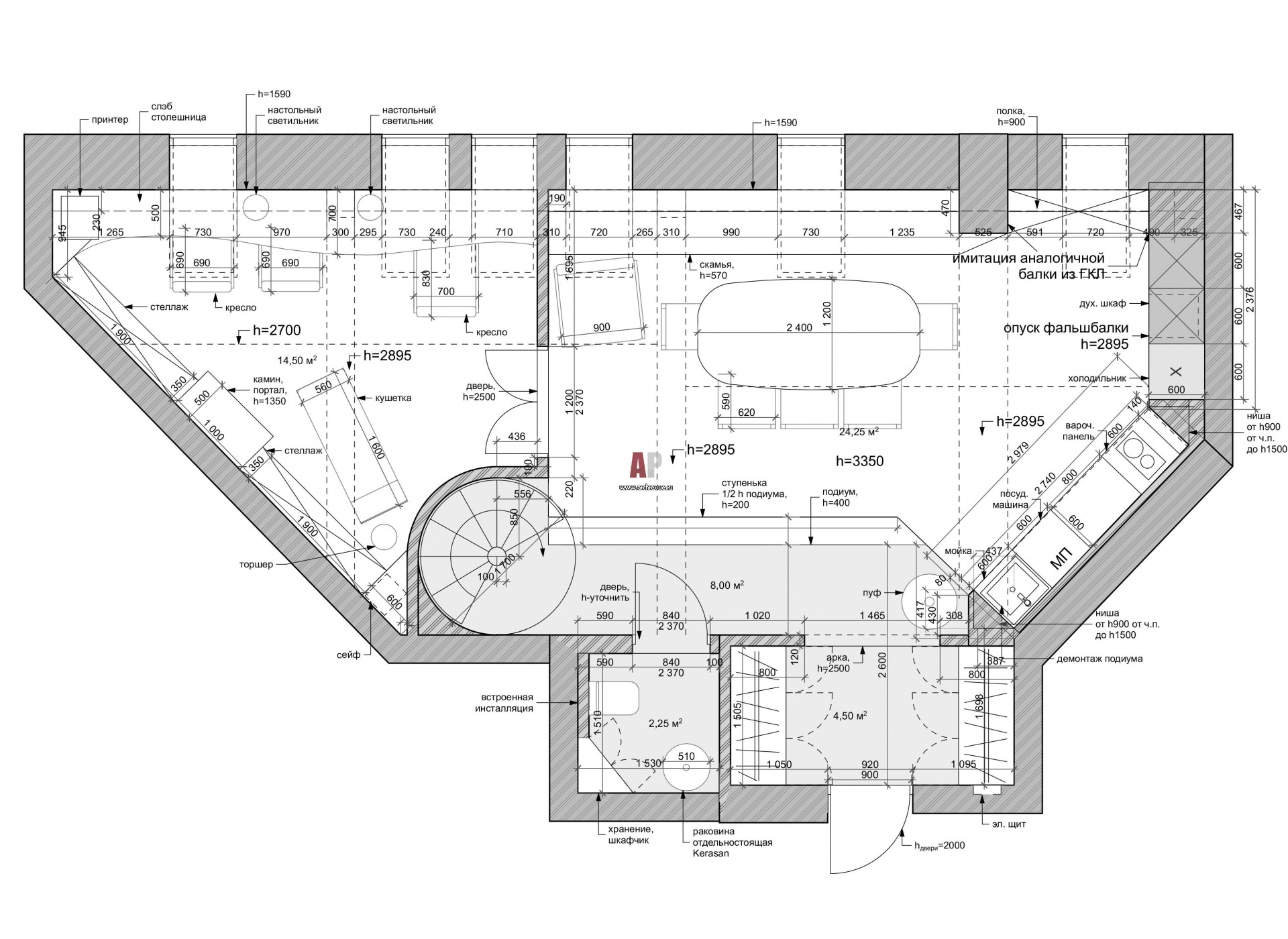 Планировка 1 этажа 2-х этажной мансардной квартиры в историческом доме.