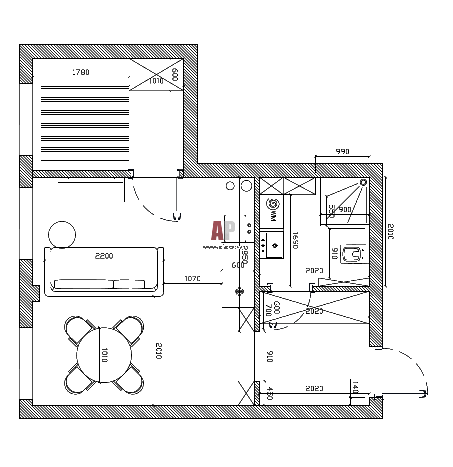 План однокомнатной квартиры в старом доме. Общая площадь – 32 кв. м.