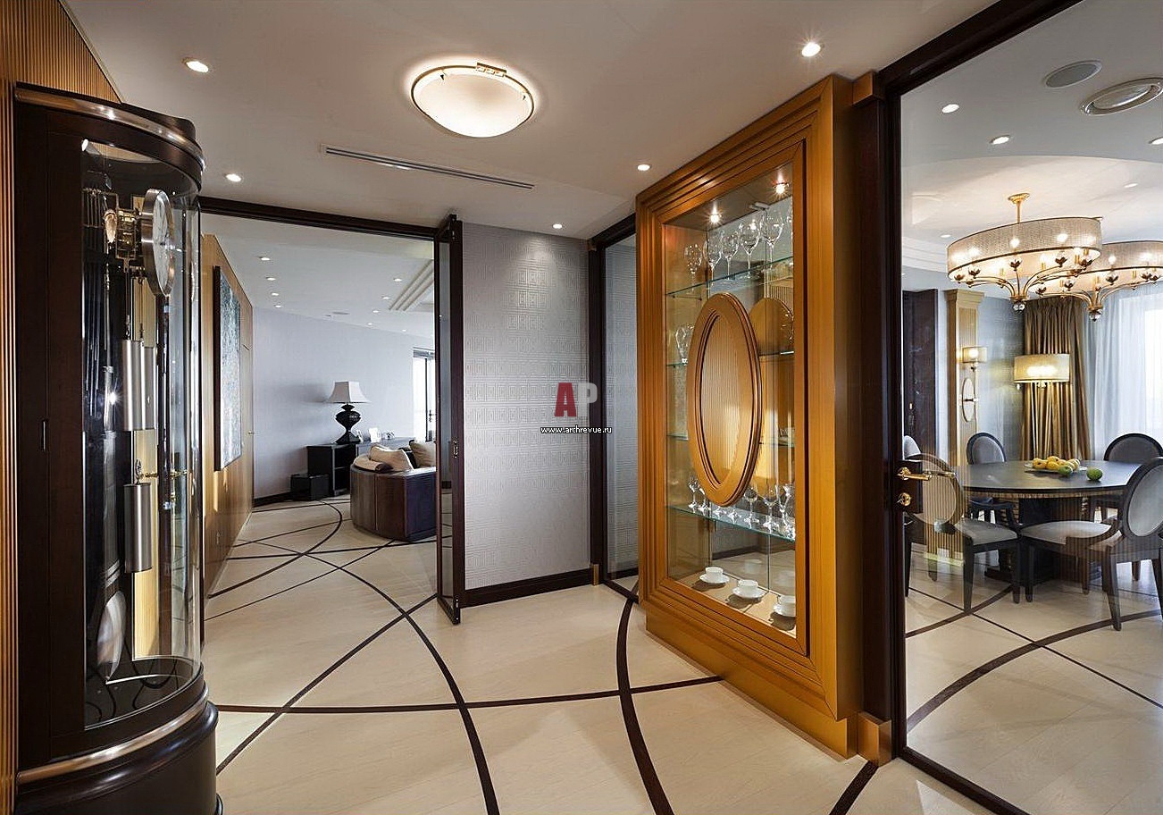 Фото интерьера входной зоны пентхауса в стиле ар-деко Фото интерьера коридора пентхауса в стиле ар-деко