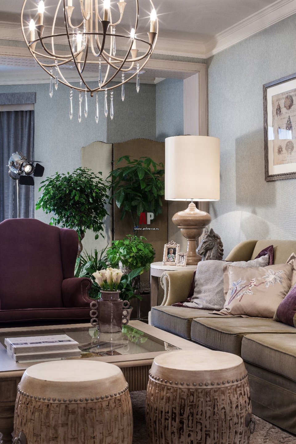Фото интерьера гостиной квартиры в стиле фьюжн