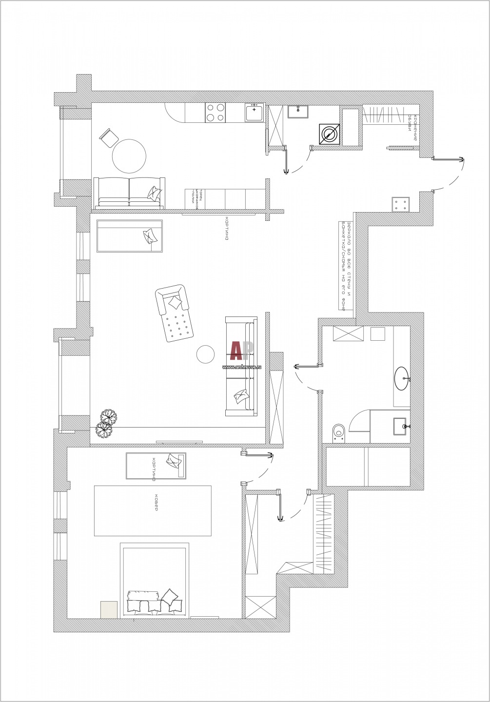 Планировка квартиры 126 кв. м с одной спальней для бизнес-леди.