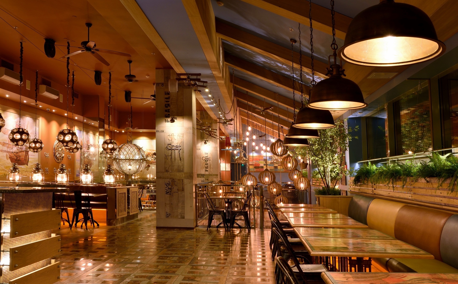 На втором этаже находится более камерный зал: площадью 200 кв. метров и вмещает он 116 посетителей. Свет в зале приглушенный.