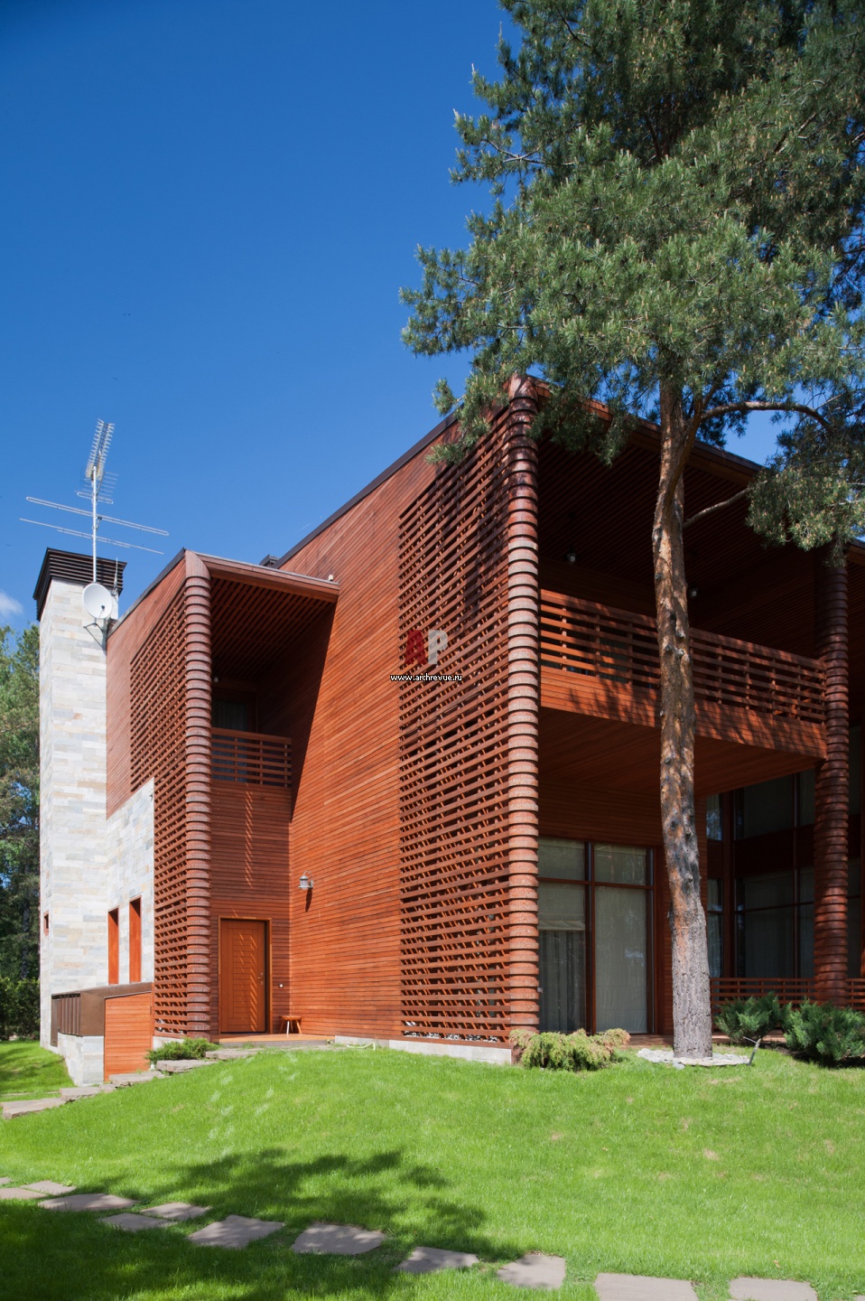 Фасад дома. В качестве несущих конструкций использованы монолитные железобетонные рамы и стены из силикатного кирпича. Междуэтажные перекрытия - монолитный железобетон. Перегородки - из силикатного кирпича, гипсокартонные по металлическому каркасу.