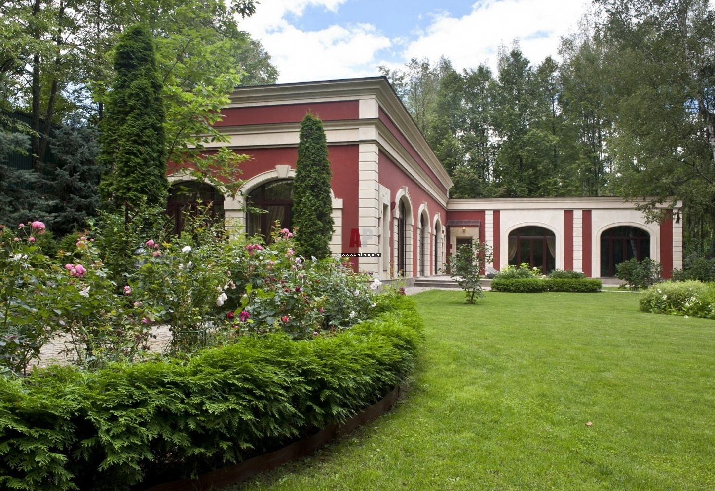 В глубине участке выстроен павильон с бассейном и СПА-зоной. По стилистке и цветовой гамме он повторяет облик главного дома.