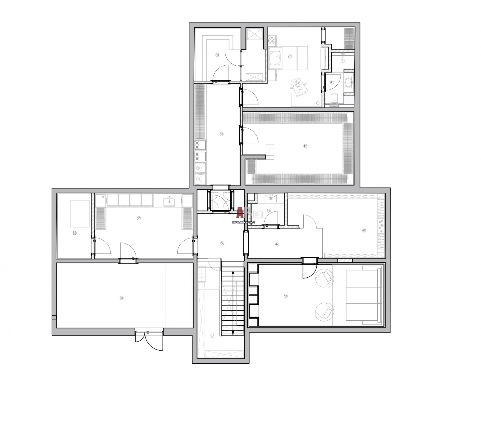 План третьего этажа трехэтажного дома в лесу. Общая площадь – 850 кв. м.