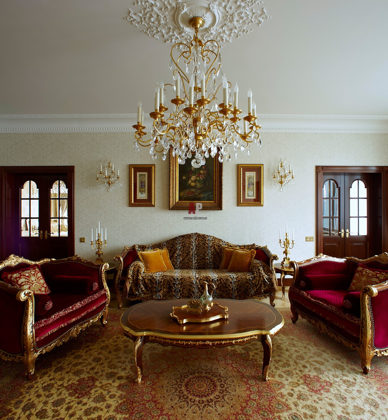 В оформлении гостиной прослеживаются черты рококо. Ковер – ручной работы (Иран).