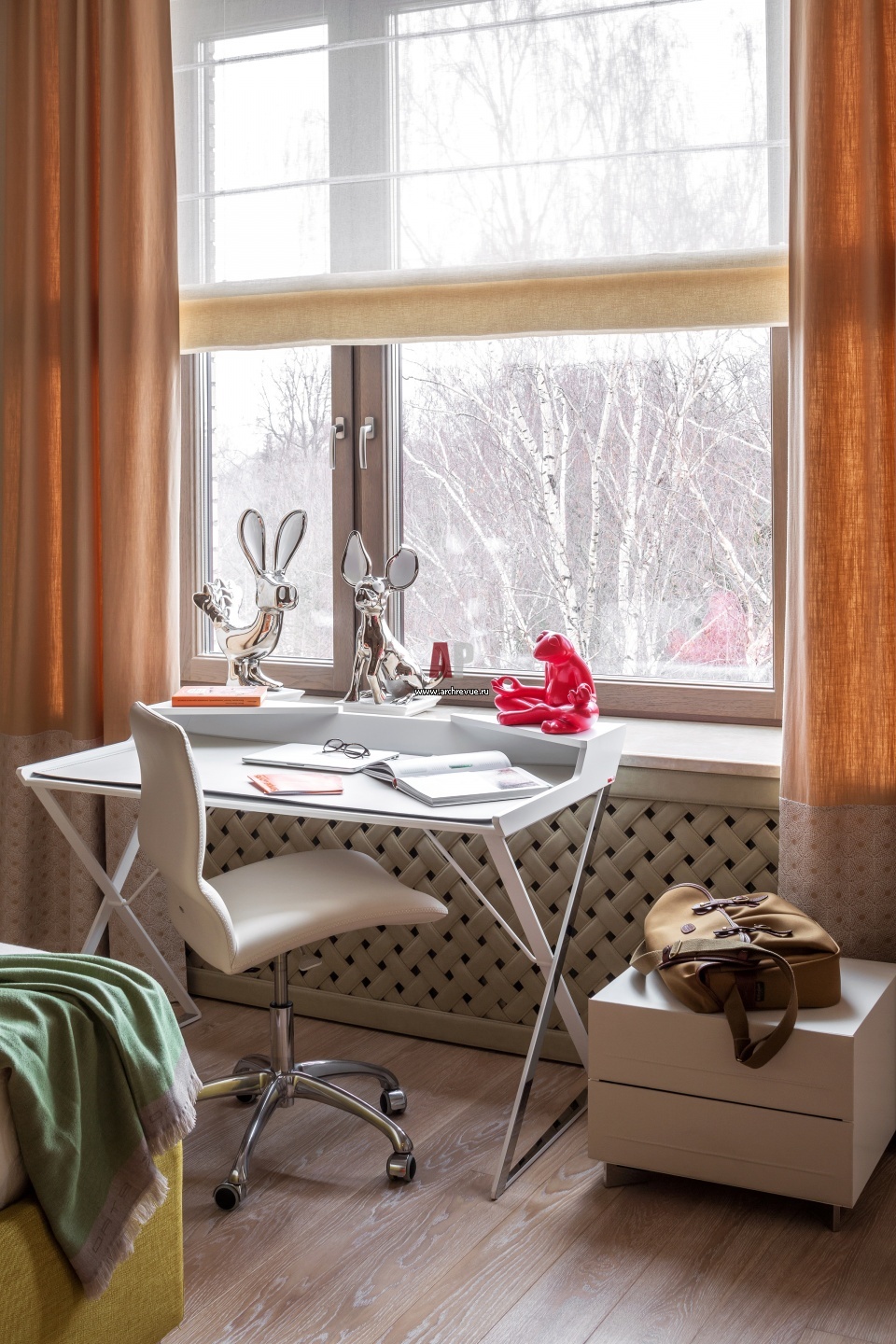 Рабочая зона в детской комнате выходит на парк. Письменный стол, стул, Cattelan Italia.