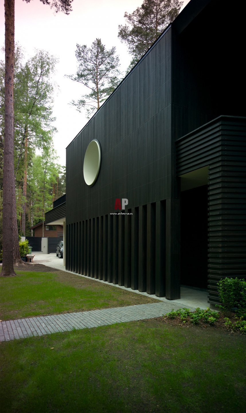 Боковой фасад дома. На двух этажах архитекторы сделали несколько круглых окон.