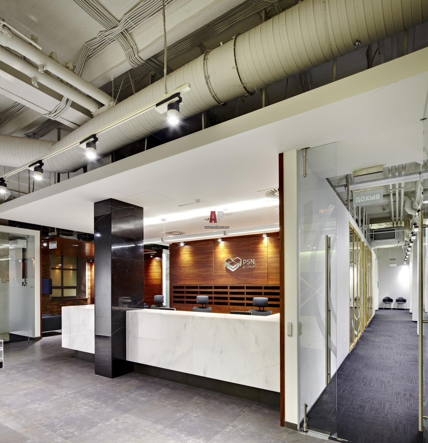 Потолки оставлены открытыми, вентиляционные короба и металлические трубы пожаротушения являются частью урбанистического интерьера.