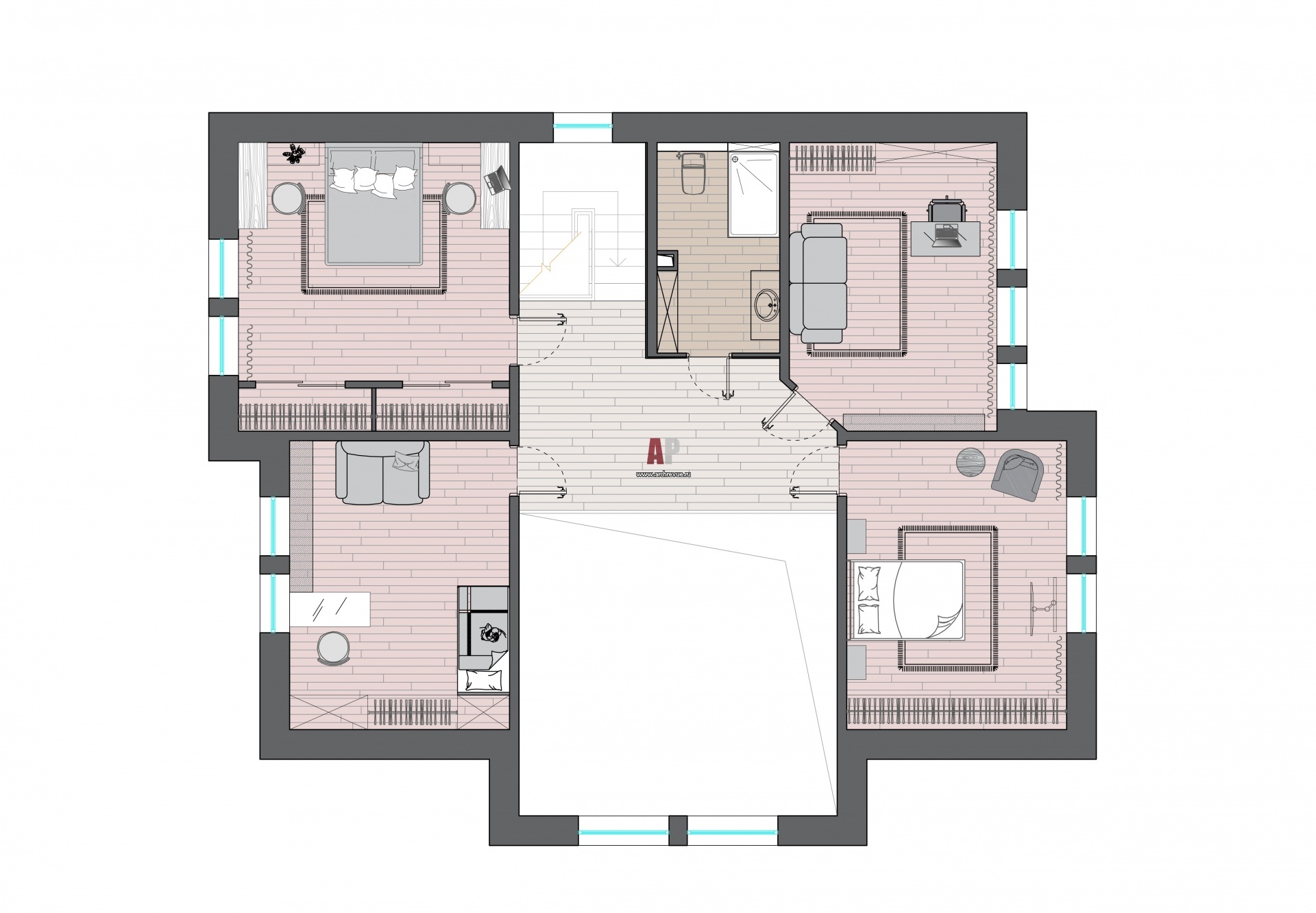 Планировка 2 этажа маленького 2-х этажного дома для семьи с ребенком.