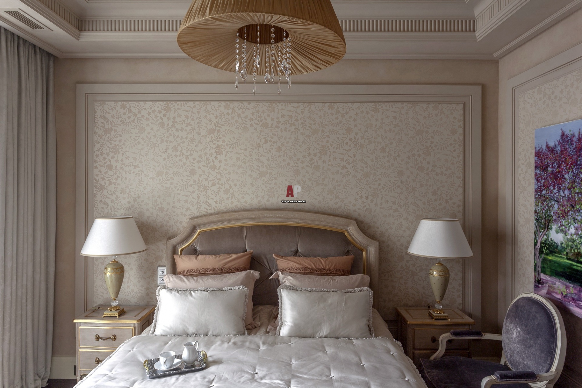 Спальня бабушки расположена ближе всего к гостиной, что чрезвычайно удобно для пожилого человека. Люстра, Beby Group. Кровать, Savio Firmino.