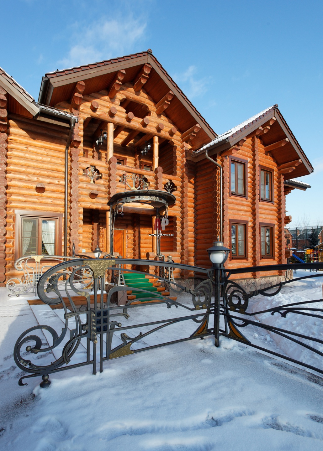 Фрагмент фасада деревянного дома. Кованые детали в стиле модерн.