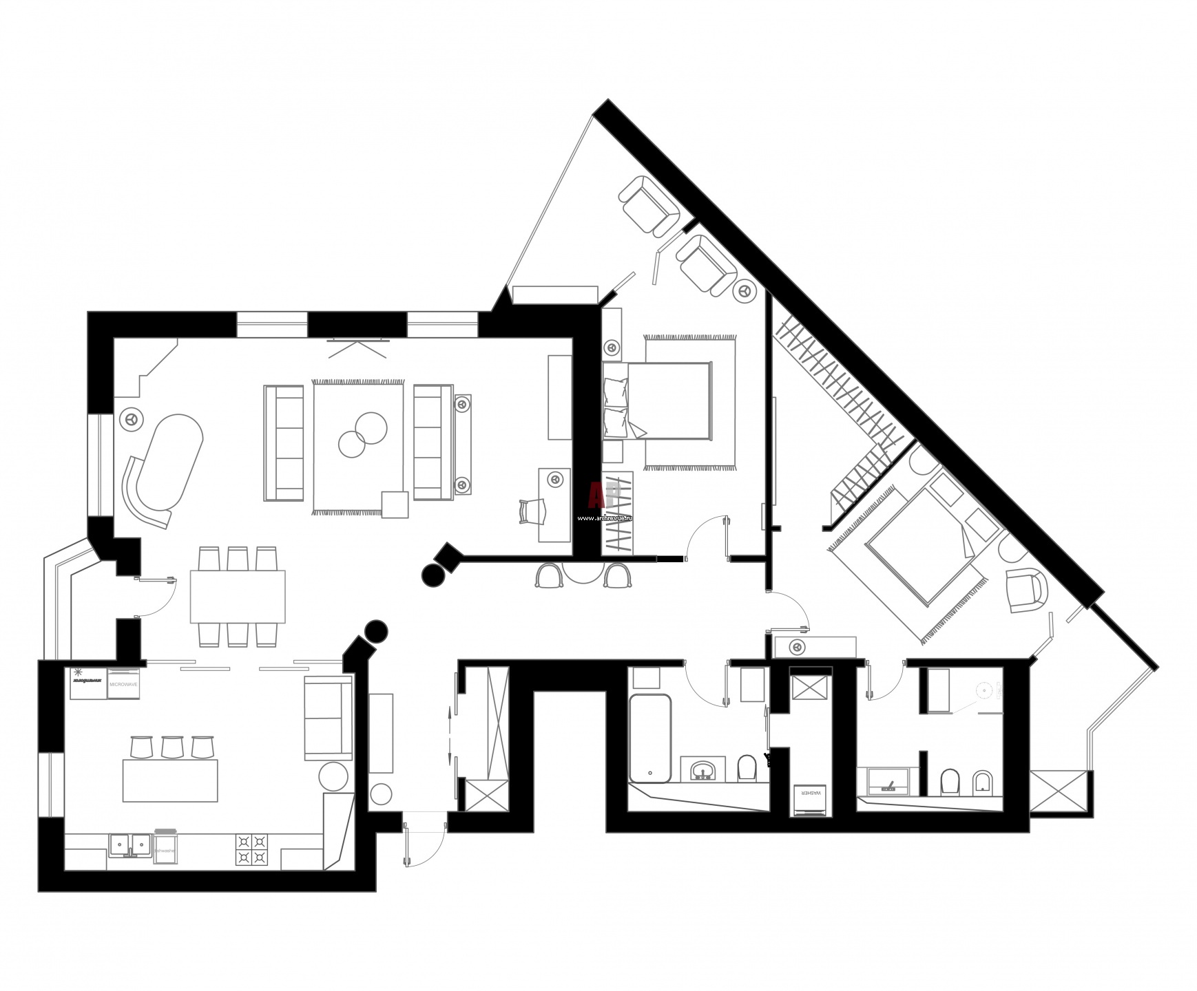 План трехкомнатной квартиры в Алма-Ате после реконструкции. Общая площадь – 157 кв. м.