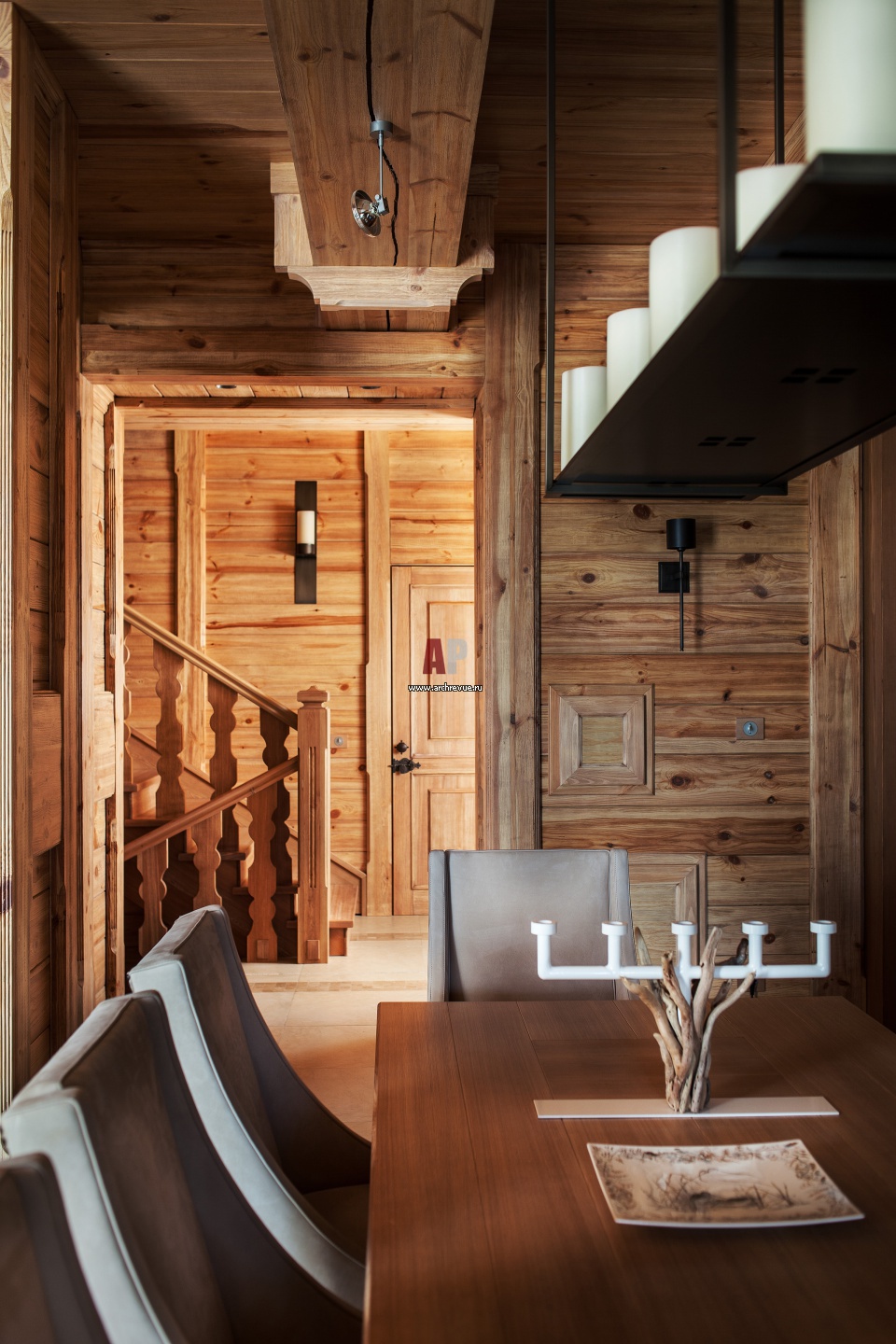 Интерьер дома в эко-стиле. Светильник над обеденным столом с основанием из черной бронзы с патиной, Kevin Reilly. Стулья с обивкой из светлой замши, Marie's Corner.