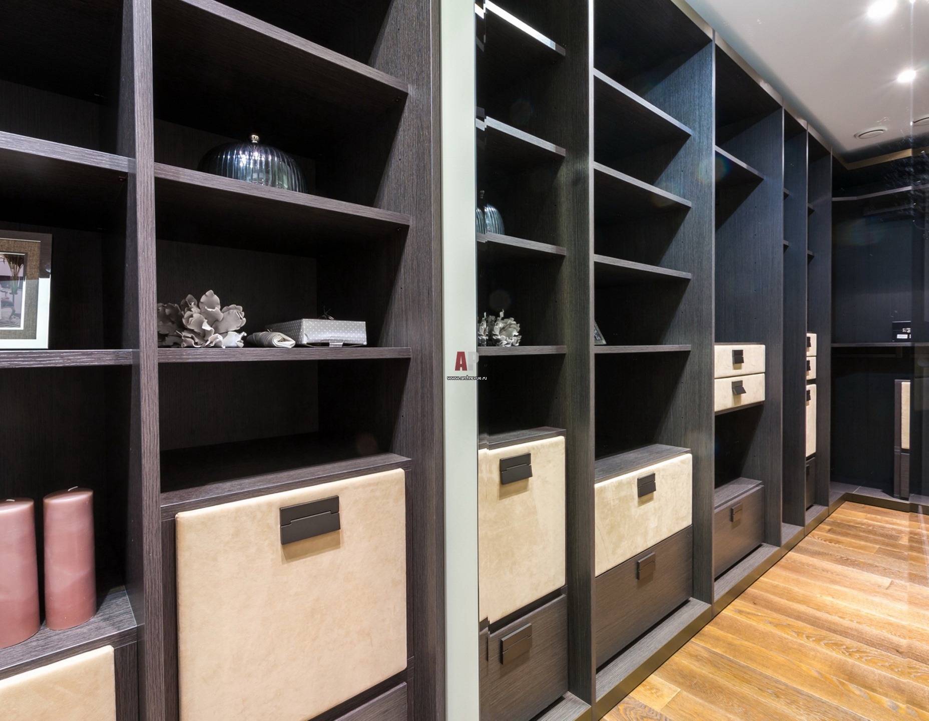 Интерьер гардеробной при хозяйской спальне. Встроенная мебель, Mobileffe.
