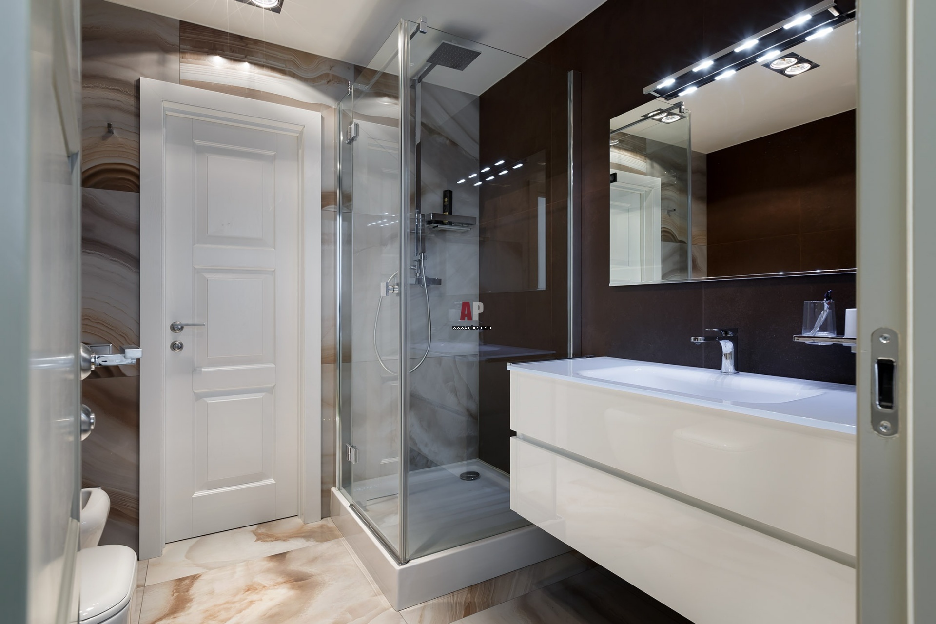 Фото интерьера ванной комнаты в мужской квартире. На стенах и полу - керамогранит Rex с фактурой мрамора. Сантехника, Ceramica Cielo. Смесители, краны, душевая лейка, Fima Carlo Frattini.