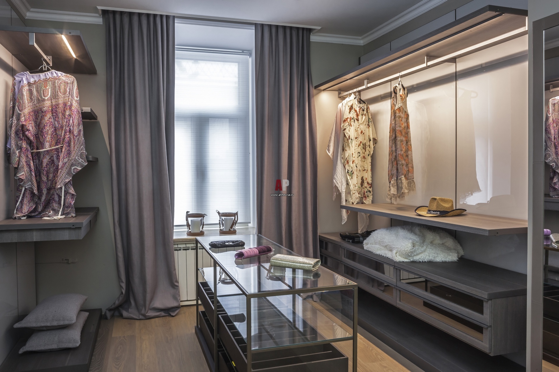 Фото интерьера гардеробной квартиры в стиле неоклассика