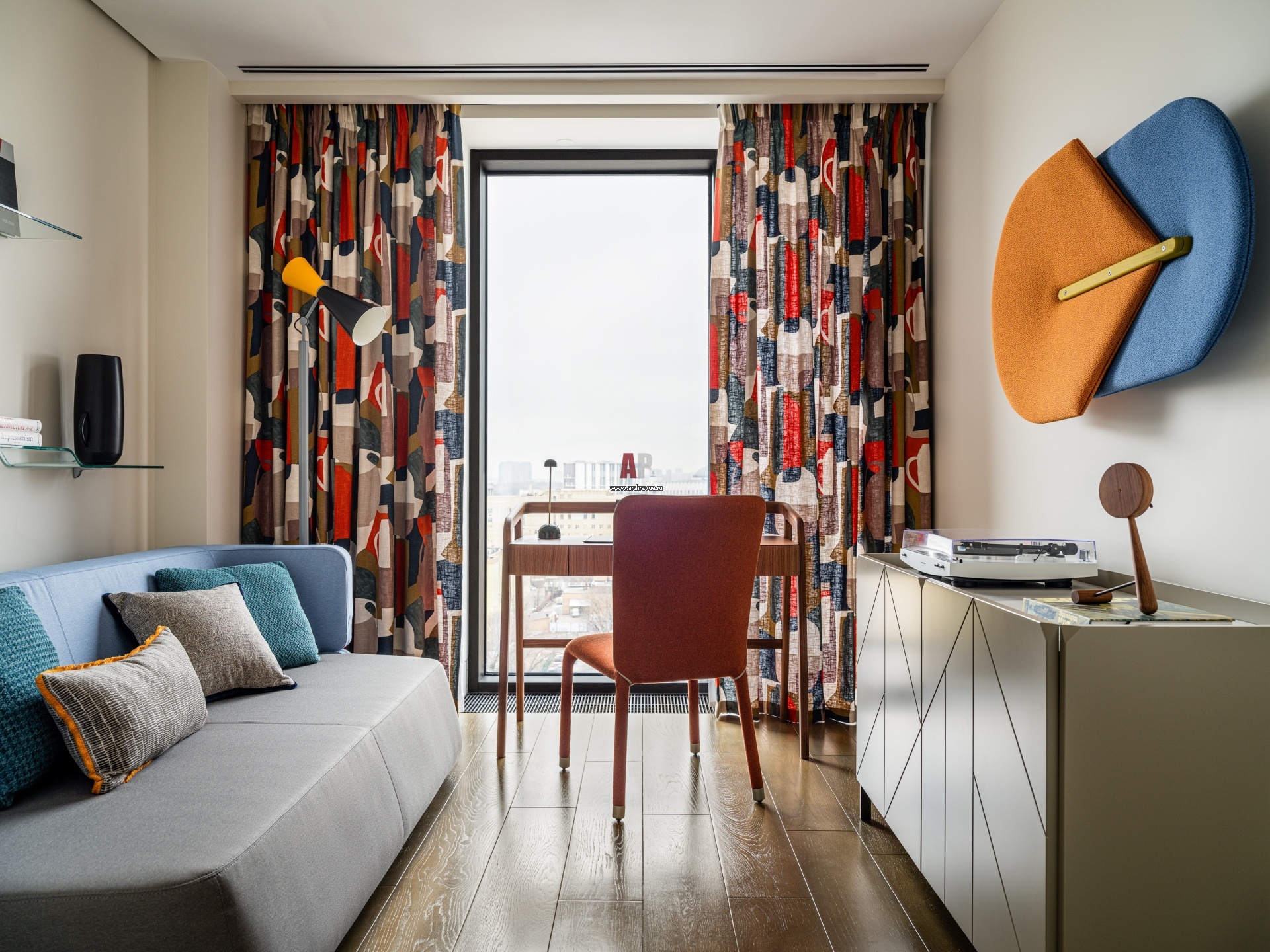 В интерьере кабинета сохраняется баланс между строгостью и вдохновением. Насыщенную теплую палитру здесь разбавляют голубые, серые и светло-бежевые оттенки. Письменный стол, Novamobili. Стул, Midj.