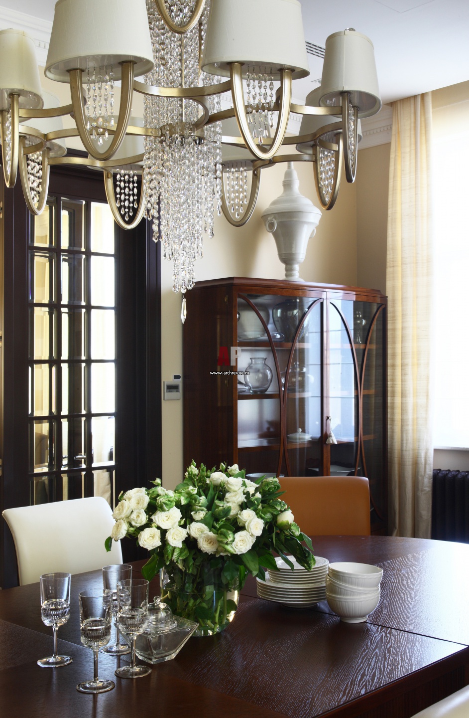 Столовая в стиле ар-деко. Овальный обеденный стол из палисандра, выполнен на заказ, по эскизам дизайнера, изготовление «Ассоциация русских мастеров».