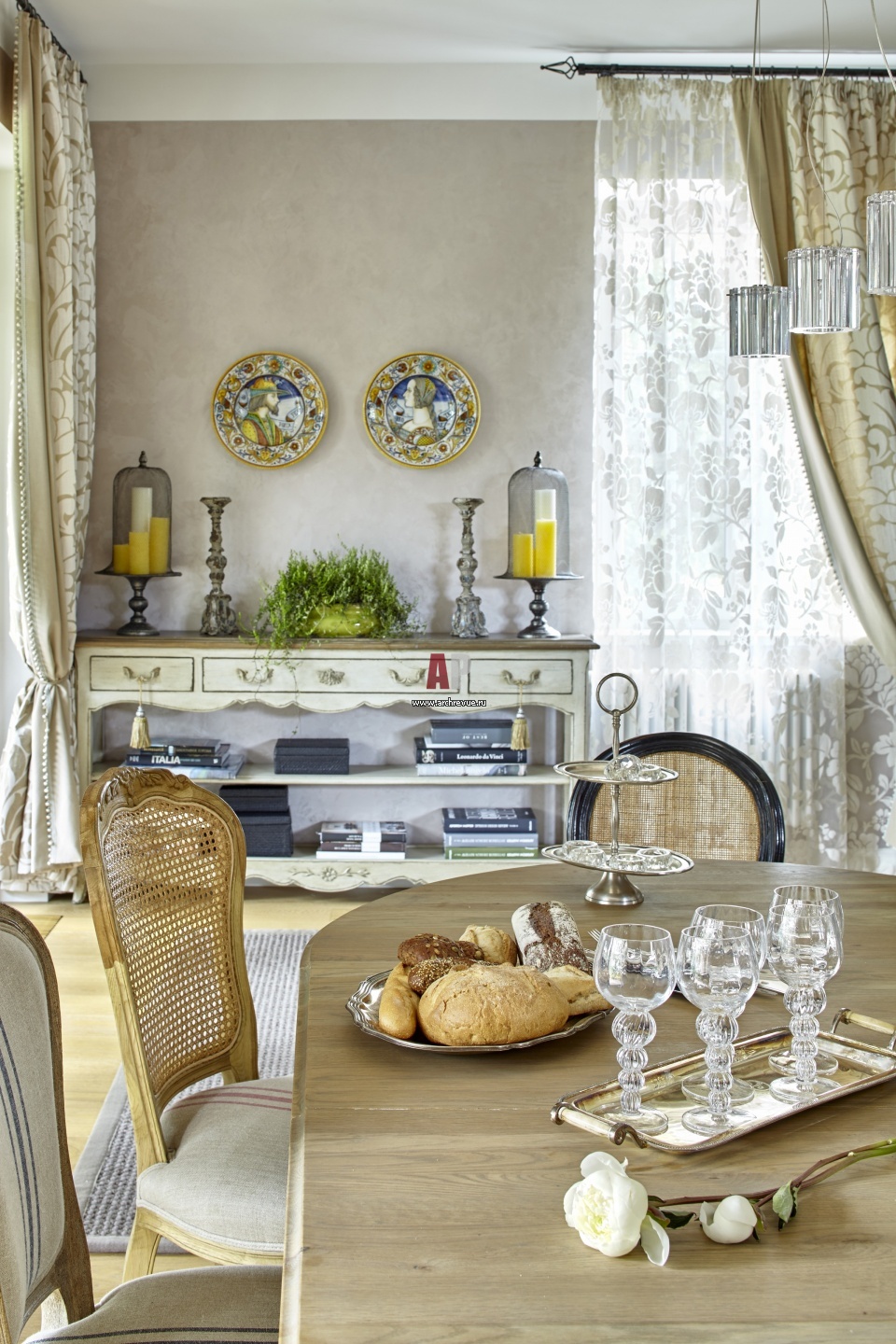 Первый этаж решен как единое открытое пространство с гостиной, столовой, зимнего сада с белоснежной изразцовой печью, открытой веранды с выходом на лужайку перед домом.
