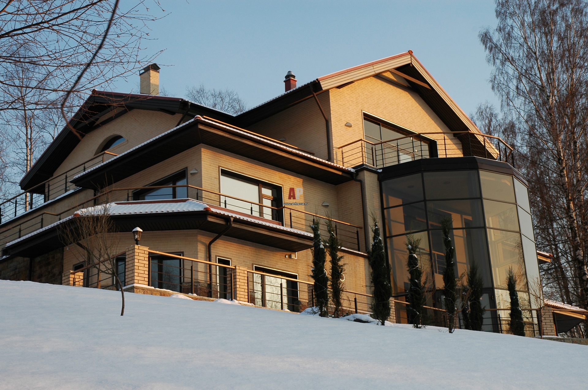 Архитектура дома, расположенного на участке со сложным рельефом и большим перепадом высот.
