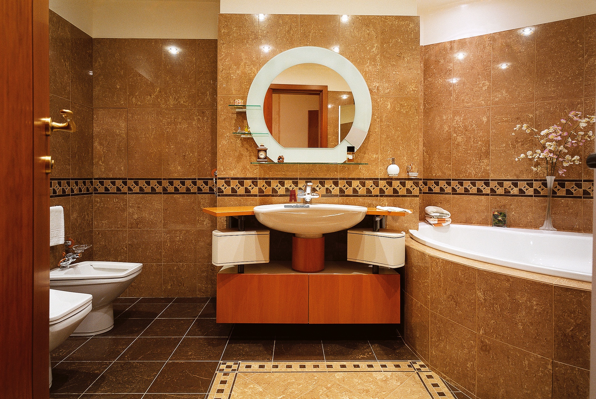 Интерьер ванной комнаты квартиры с элементами ар-деко. Сантехника Villeroy & Boch.