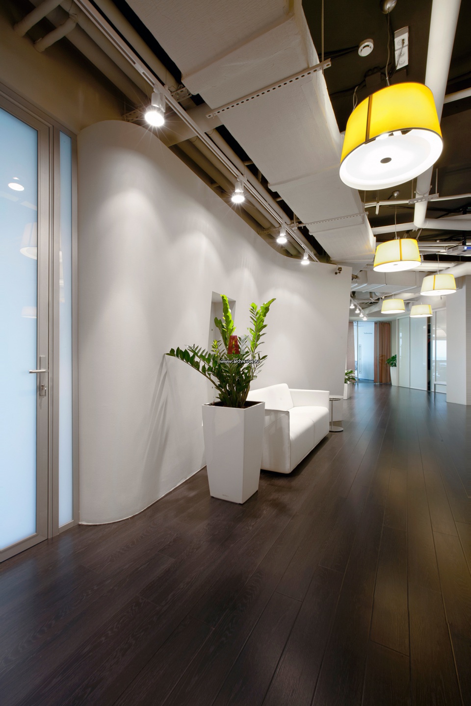 Фрагмент интерьера приемной. Пластичная белая стена вносит в интерьер динамику. Авторы проекта Петр Зайцев, Арсений Борисенко, архитектурное бюро za bor.