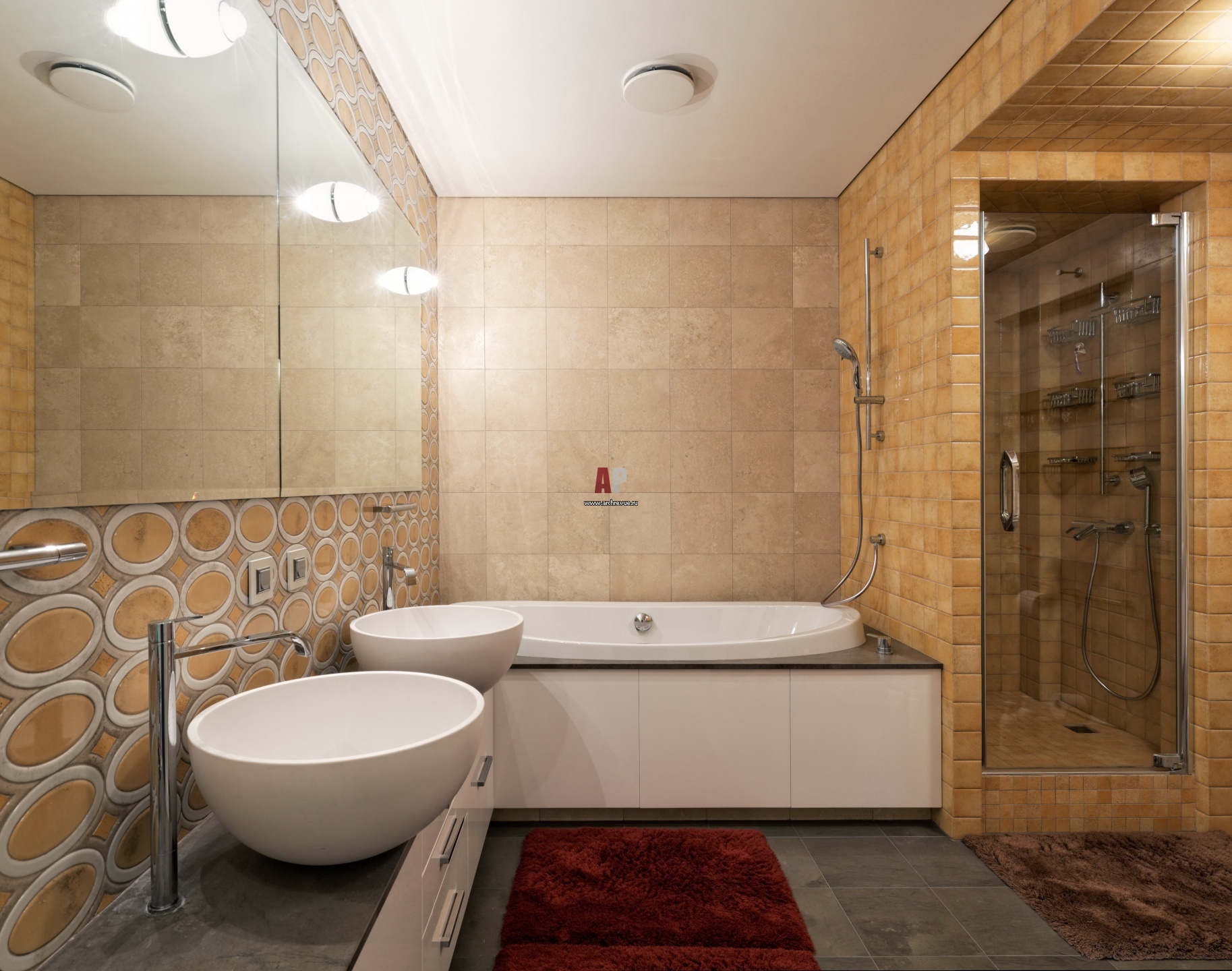 Декоративная тема детского санузла – круг. Керамогранит, CottoVeneto и Ceramica di Treviso. Сантехника, Antonio Lupi, Flaminia.