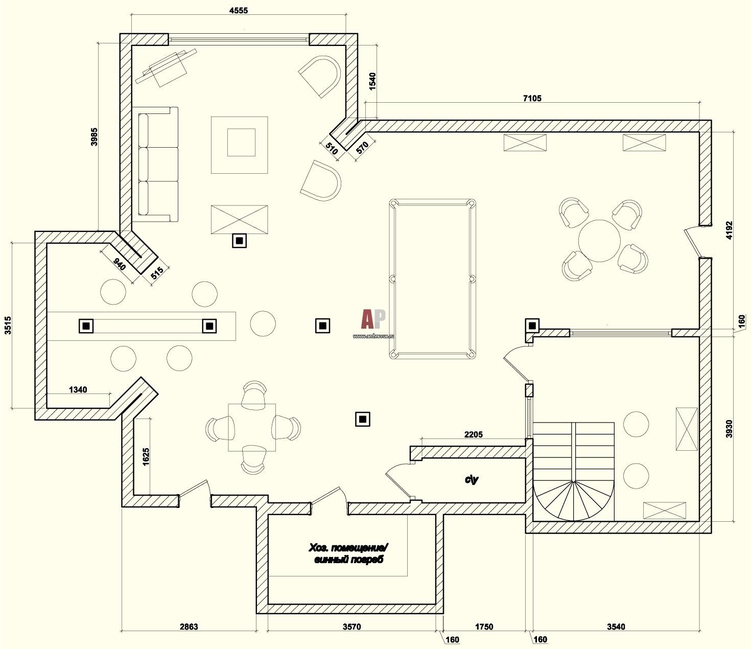 Планировка 3 этажа 3-х этажного коттеджа в английском стиле.