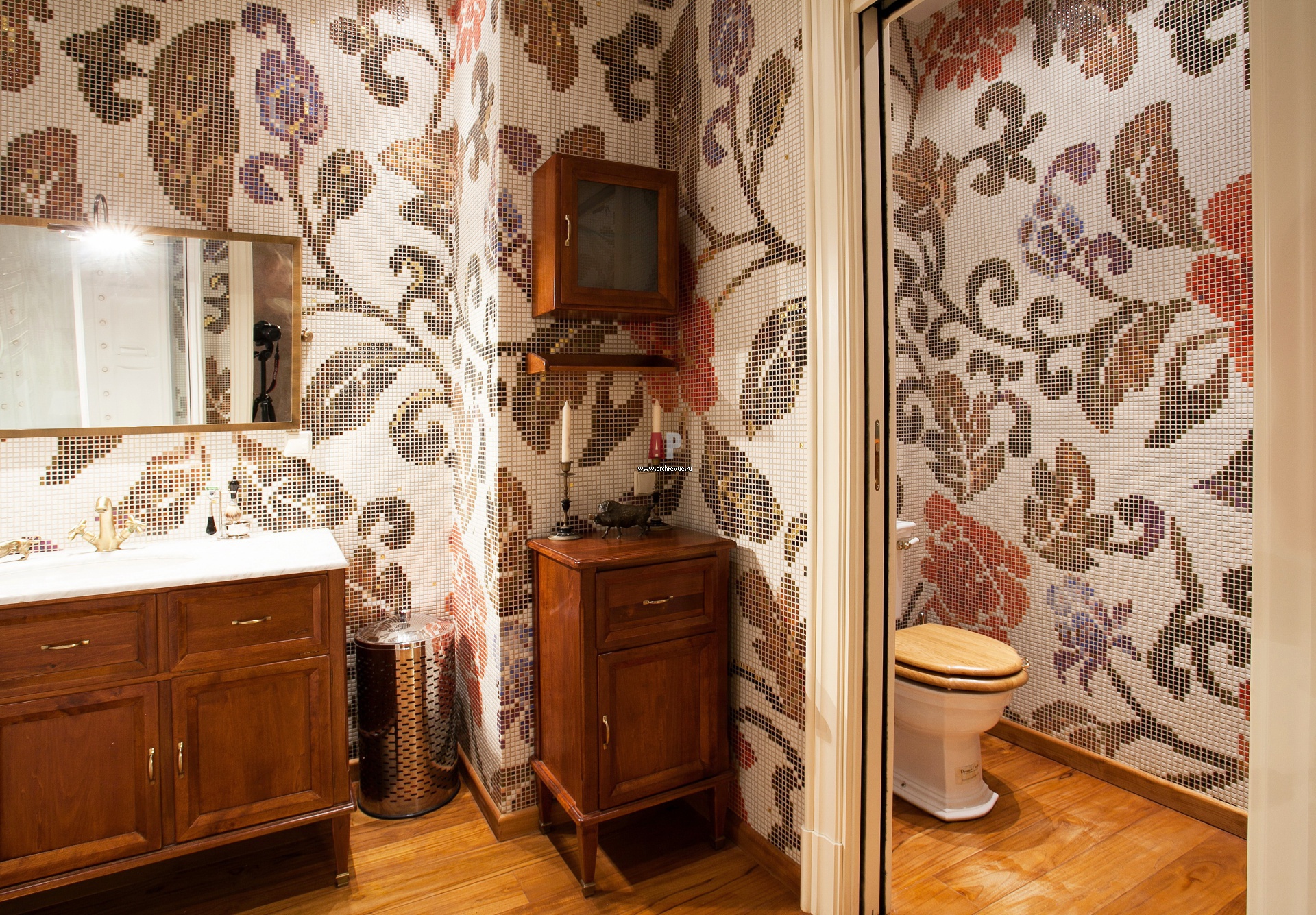 Фото интерьера санузла в английском стиле. Мозаика, Sicis. Унитаз, раковина, Devon & Devon.