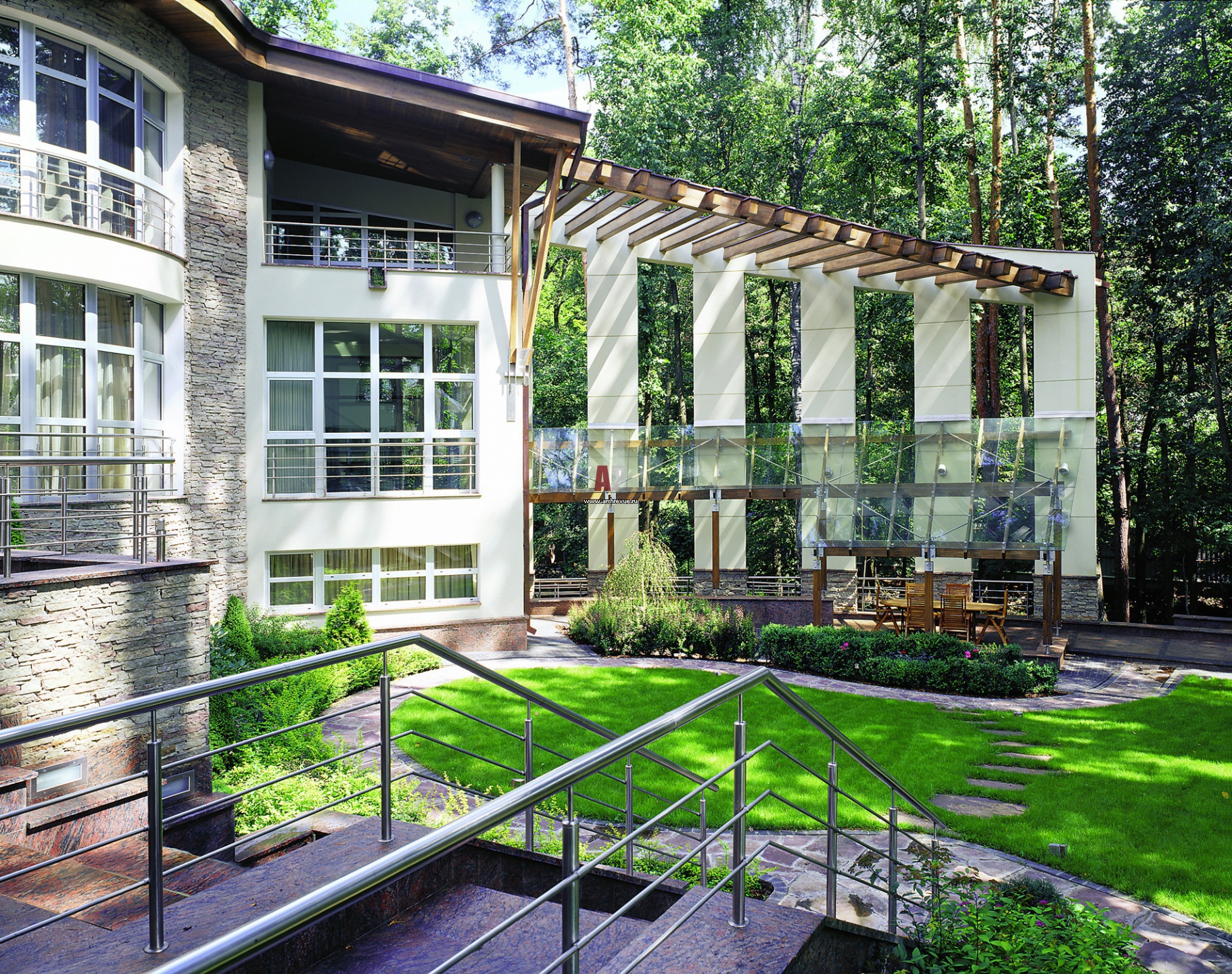 Фото фасада дома в стиле ар-деко. Вид на внутренний дворик.