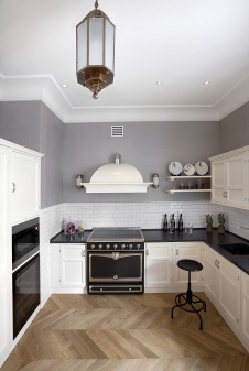 Фото интерьера кухни двухэтажной квартиры в стиле неоклассика