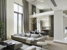 Фото интерьера гостиной пентхауса в современном стиле