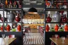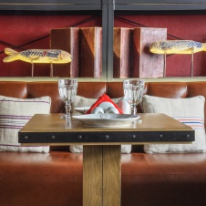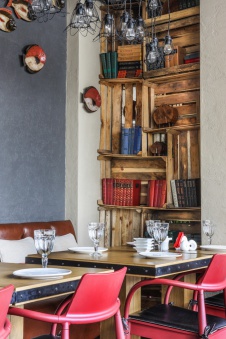 Фото интерьера зала ресторана кафе в стиле фьюжн