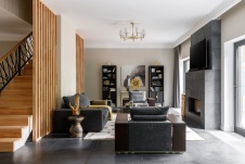 Фото интерьера зоны отдыха деревянного дома в стиле эко