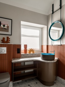 Фото интерьера гостевого санузла дома в стиле фьюжн